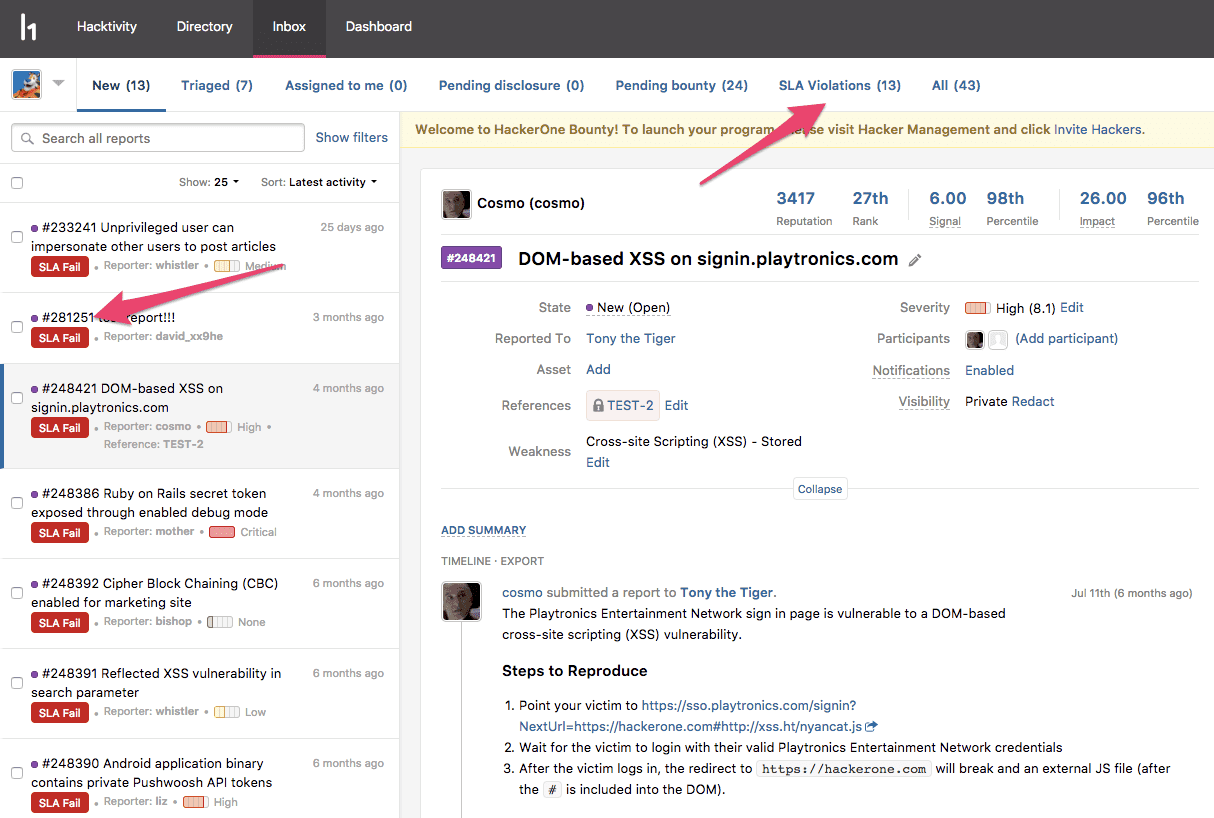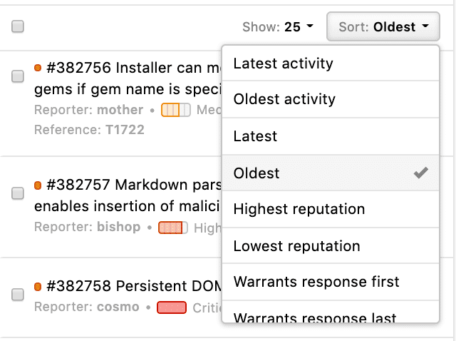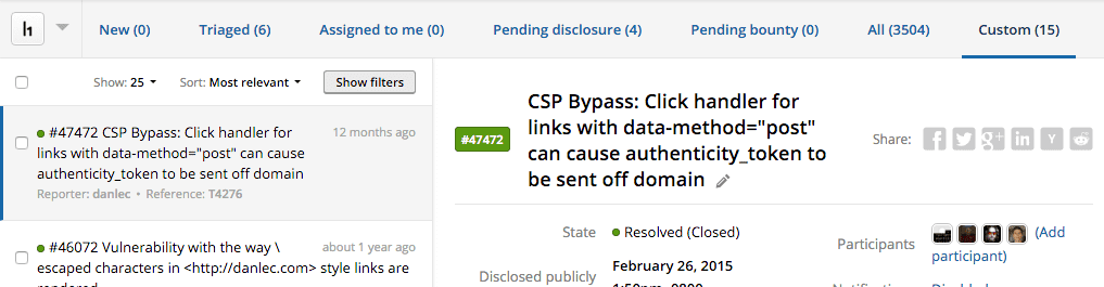 We’ve redesigned the security inbox to enable faster bug processing for programs. The new inbox enables programs to open reports inline so you don’t have to click backward or forward to navigate between reports.