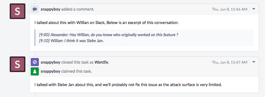 Programs using the Phabricator integration can now link their Phabricator tickets to their reports on HackerOne.