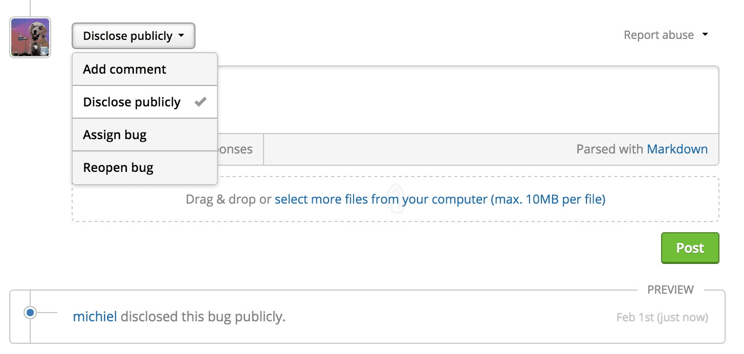 When an organization chooses to publicly disclose a vulnerability report, there’s now the option to write a summary along with a partial timeline.