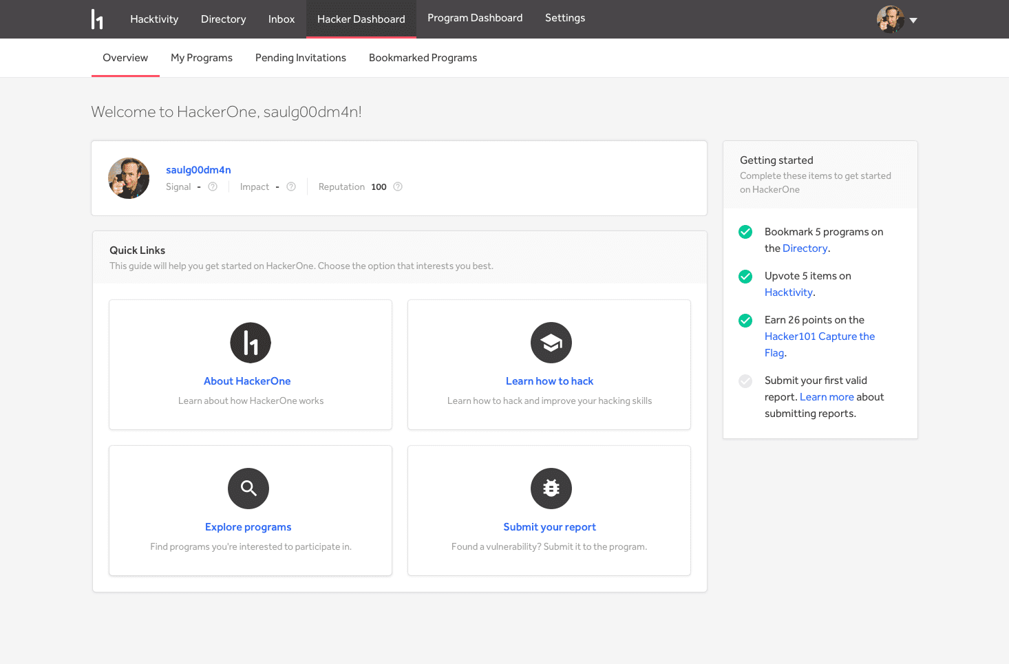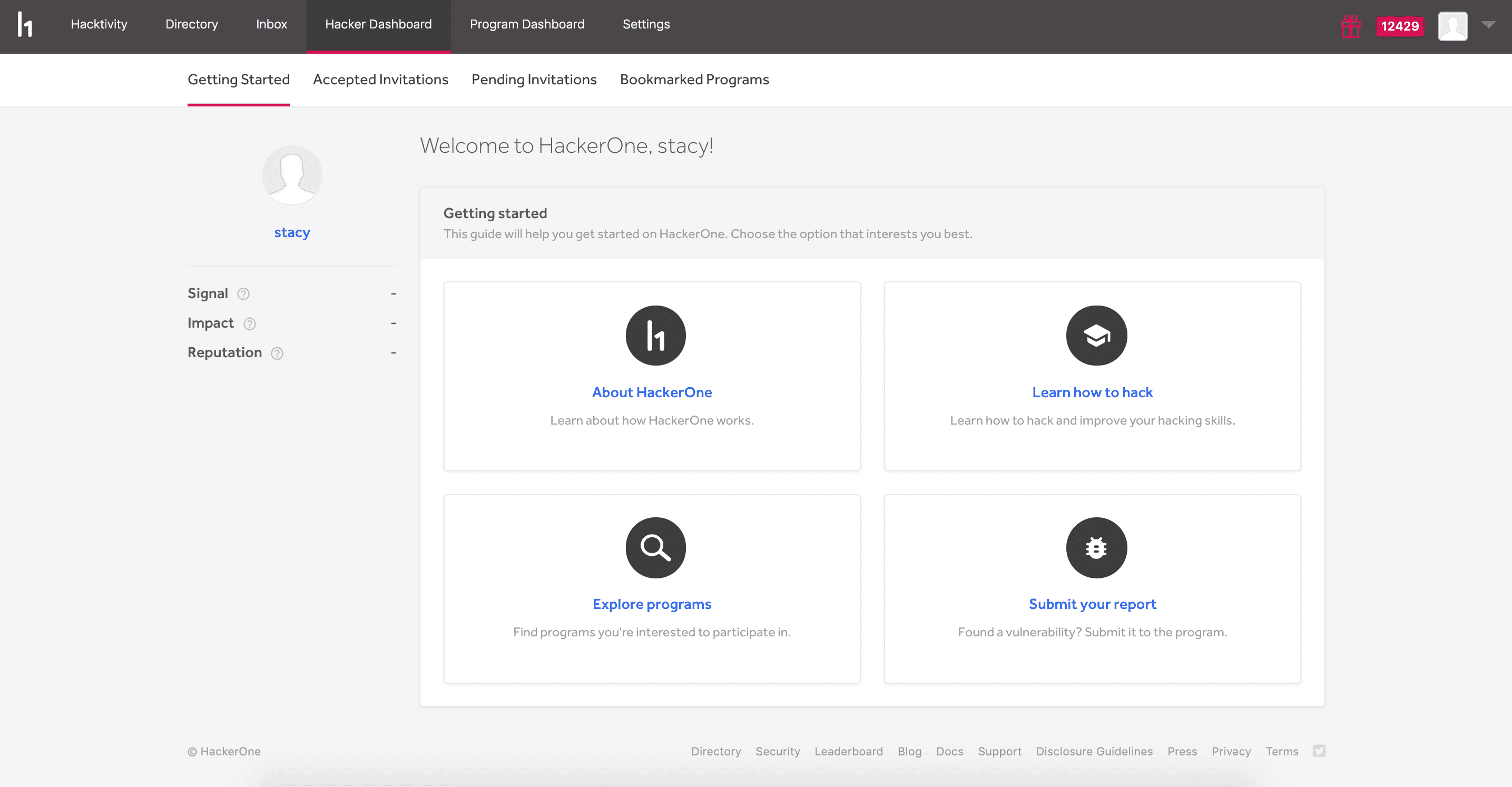 We introduce the new Getting Started page on the Hacker Dashboard. This will guide hackers and direct them to the right pages to help them get the information they need to successfully start out on HackerOne