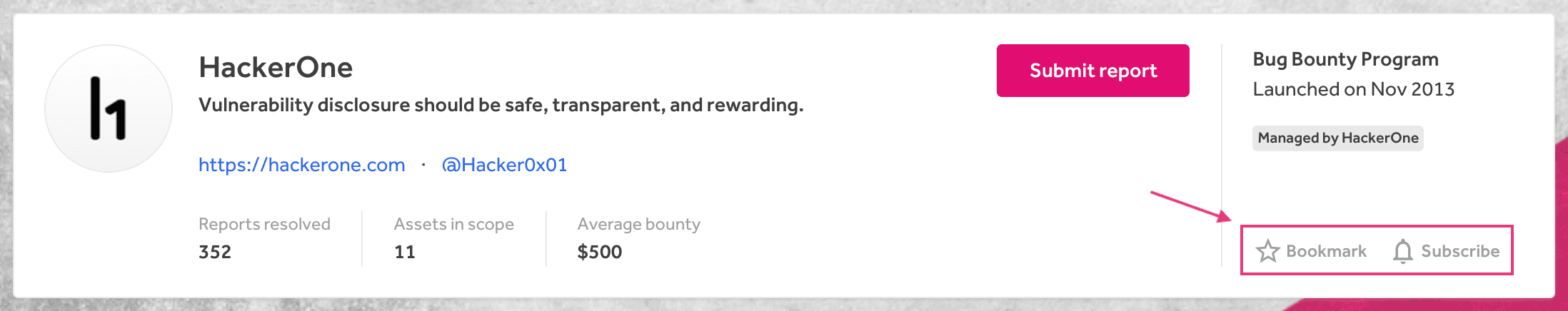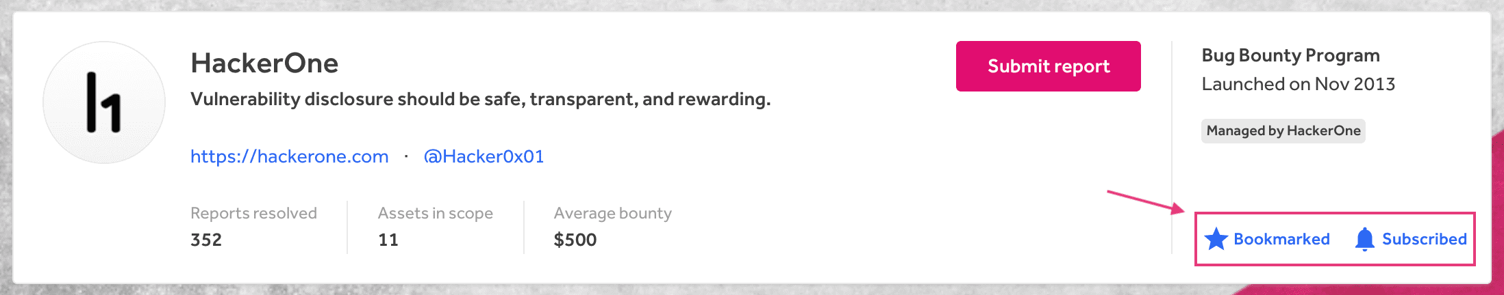 We've deprecated the Follow button on the Program Page and replaced it with a Bookmark button. We also moved the Subscribe button from the bottom of the Program Page and moved it to the top next to the new Bookmark button so that hackers can easily subscribe to program updates and add programs to their bookmarked program list on their dashboard.