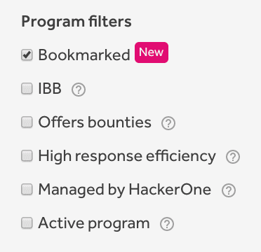 We added the new Bookmarked program filter to the My Programs tab so that hackers can view their bookmarked programs on the same page.