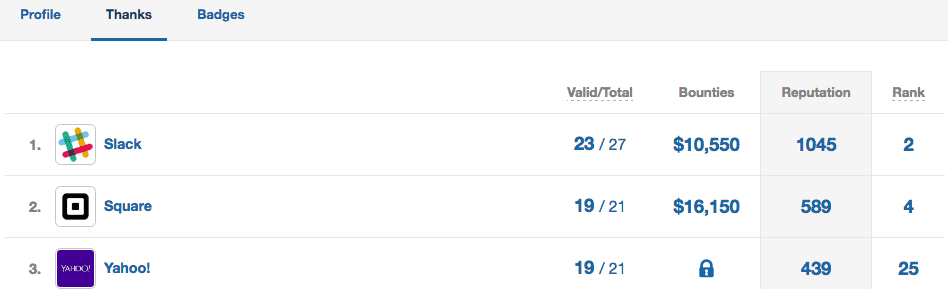 We’ve totally revamped our Thanks page on the hacker profile so that all the programs hackers have made contributions to, are now listed in the order of most reputation earned. We also display for each program: