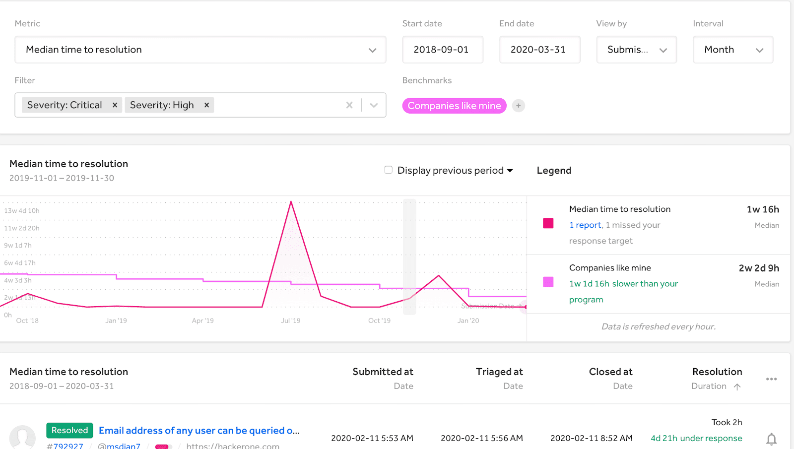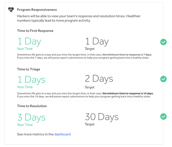 The new dashboard enables insight into your security response posture. This enables programs to be on top of response time, stale issues, pending disclosures and more.