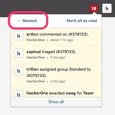 We’ve created a notifications page so that you can have a clear overview of your notifications. Go to https://hackerone.com/notifications to see your notifications.