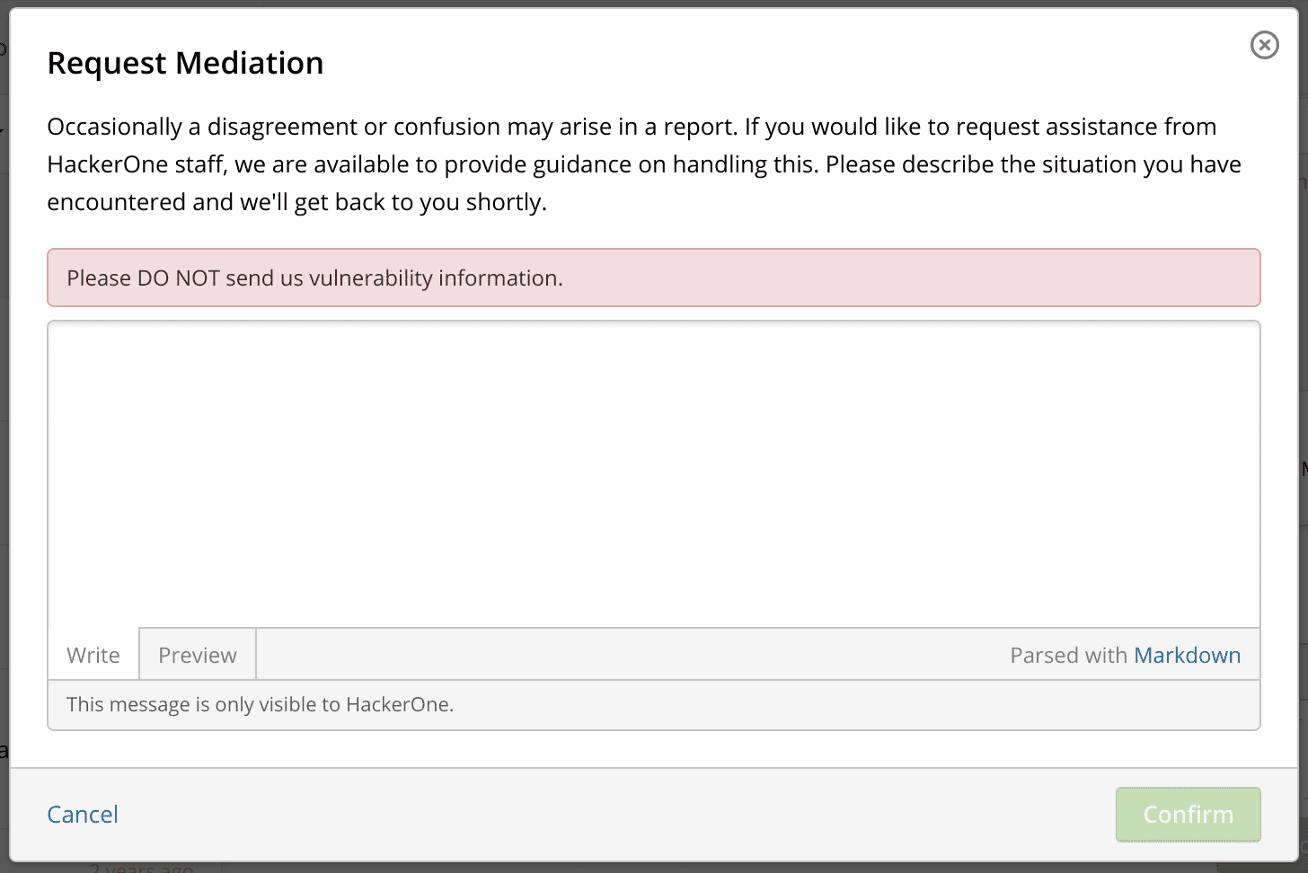 If any disagreements or discussions arise regarding a report, hackers and programs can now request mediation and our experts will provide guidance on the situation.