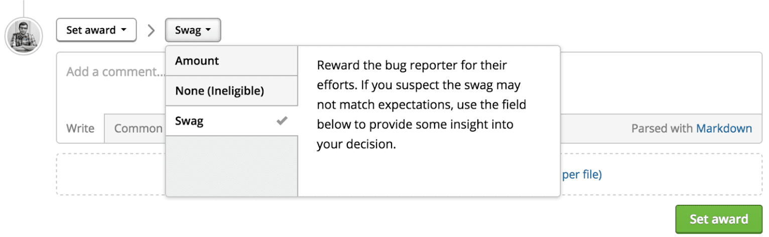 Programs are also able to now award swag to reports that are marked as ineligible for bounty.