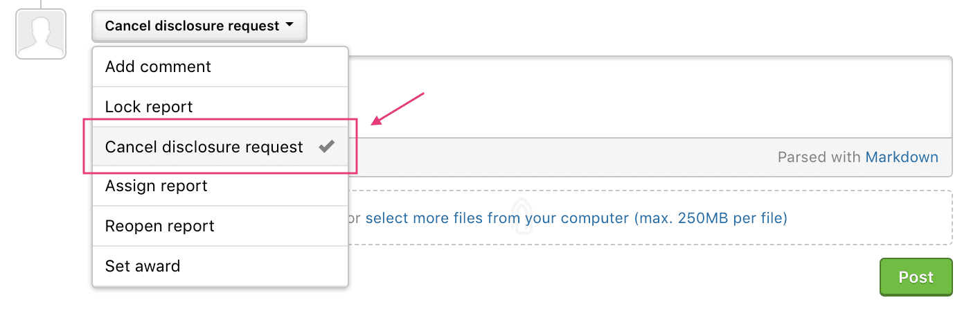 We now enable you to cancel disclosure requests. You can cancel your own requests, and hackers and programs can cancel the requests they receive from one another if they choose not to disclose a report.