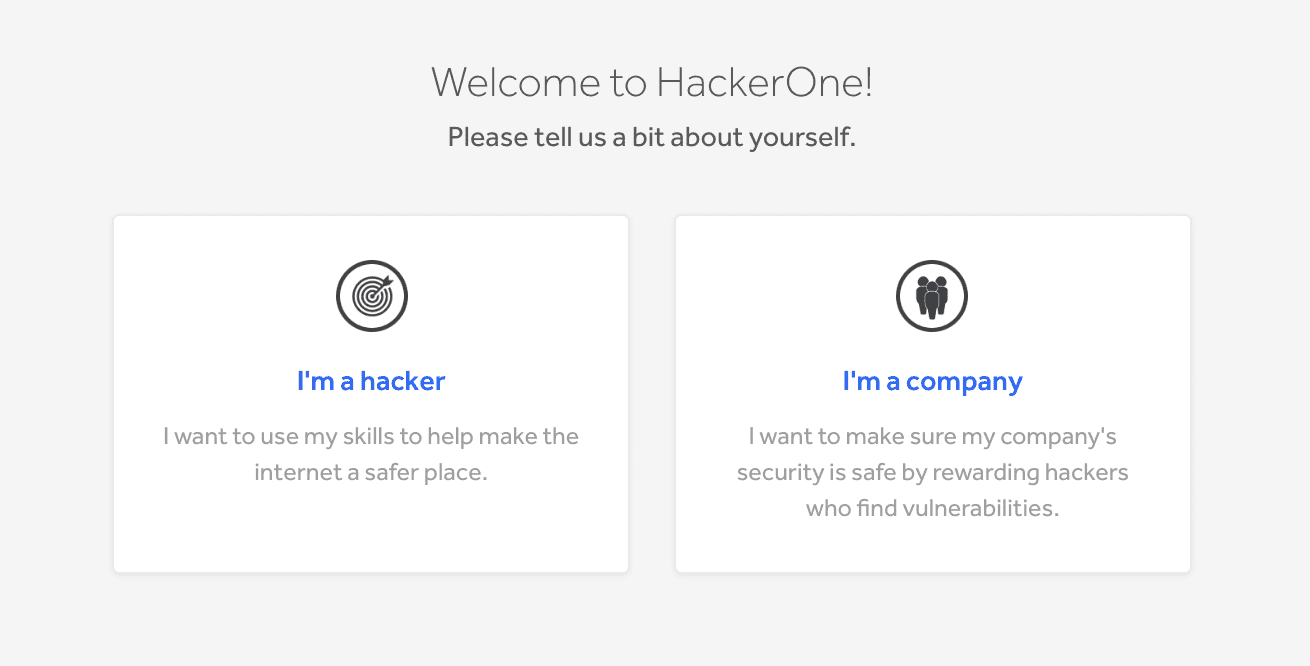 When new users sign up to use HackerOne, they can can now more clearly distinguish whether they are a hacker or a company wanting to set up an account.