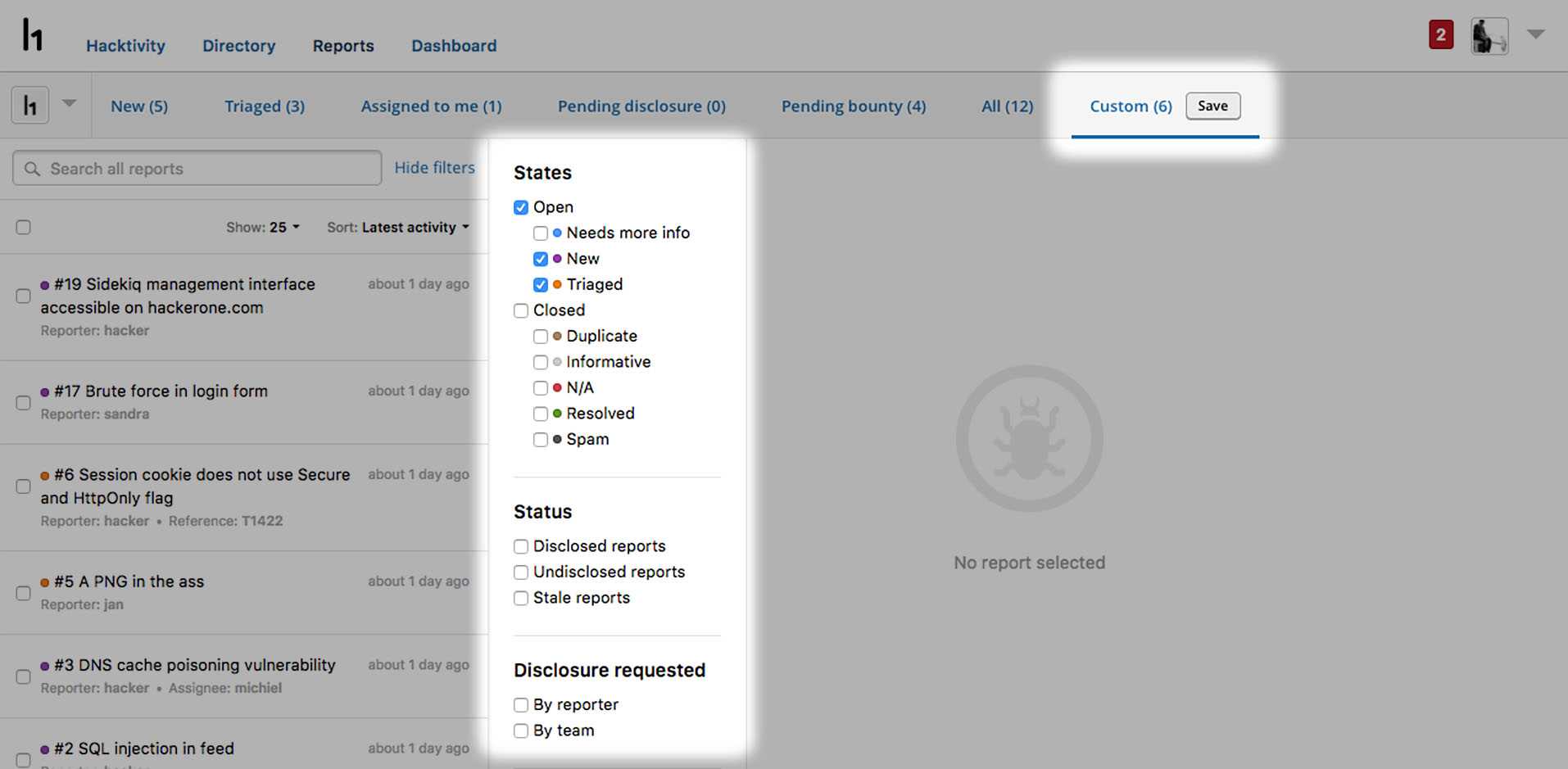 Hackers can now filter reports in their inbox by program using the Reported to field so that they don't have to filter through reports with their own eyes.
