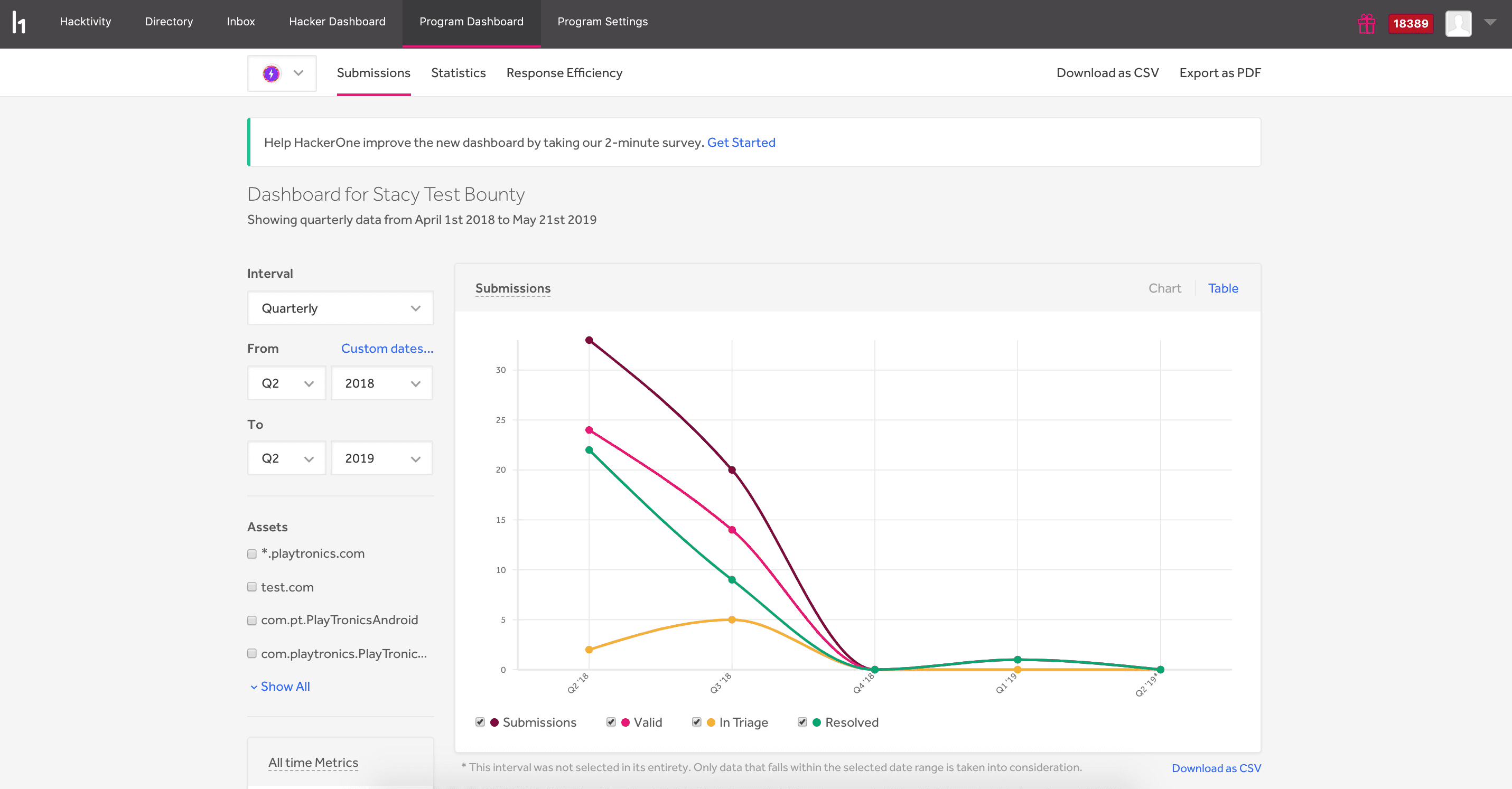 We introduce the new Hacker Feedback Dashboard where private programs can see the total feedback their program has received from hackers along with the reasons they’ve declined to participate in their program. The feedback can be viewed at Dashboard > Feedback. Learn more about the feedback dashboard.